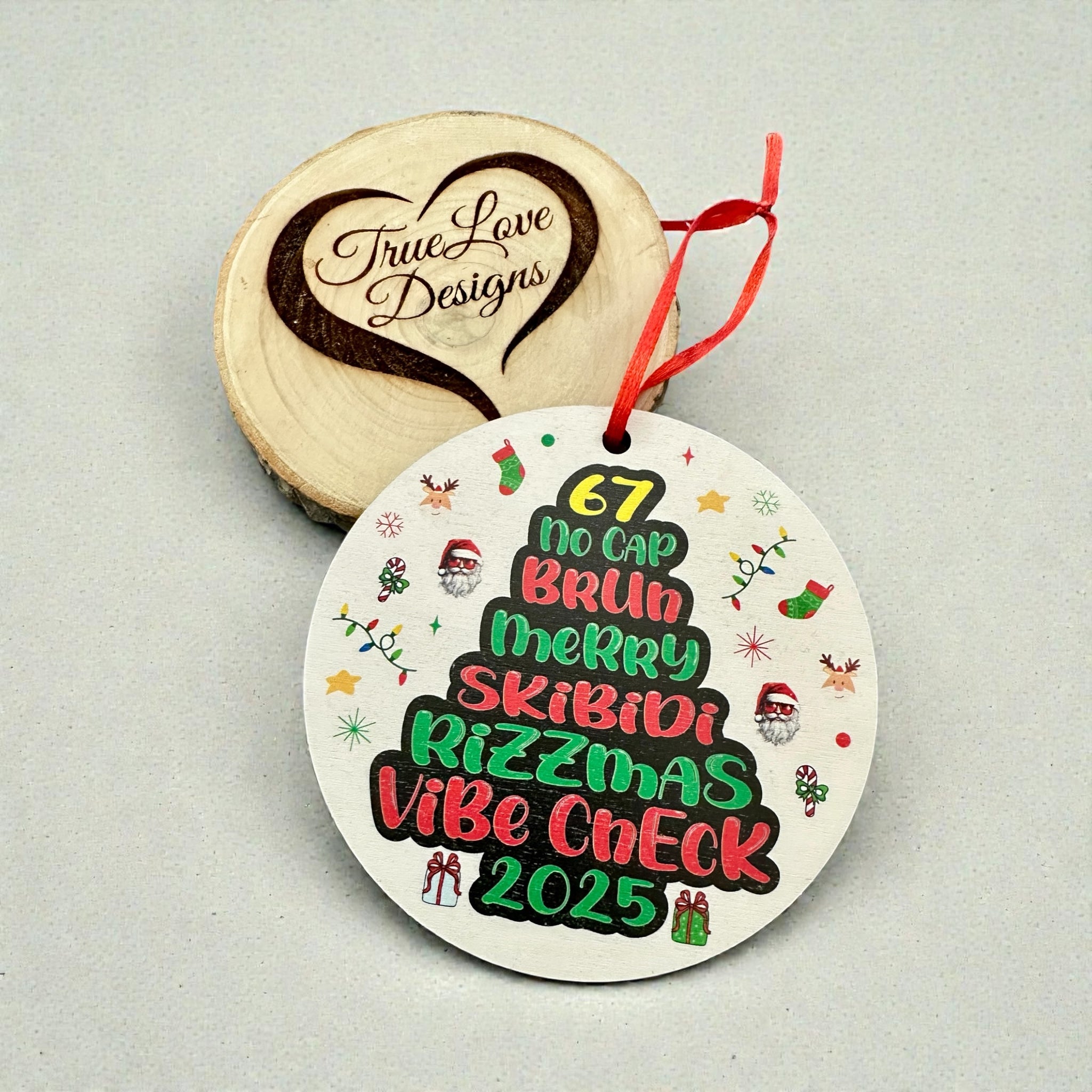 Bring maximum holiday vibes to the tree with our “67 No Cap Bruh Merry Skibidi Rizzmas Vibe Check 2025” Ornament — a hilarious, slang-packed keepsake that Gen Z kids and teens instantly recognize.