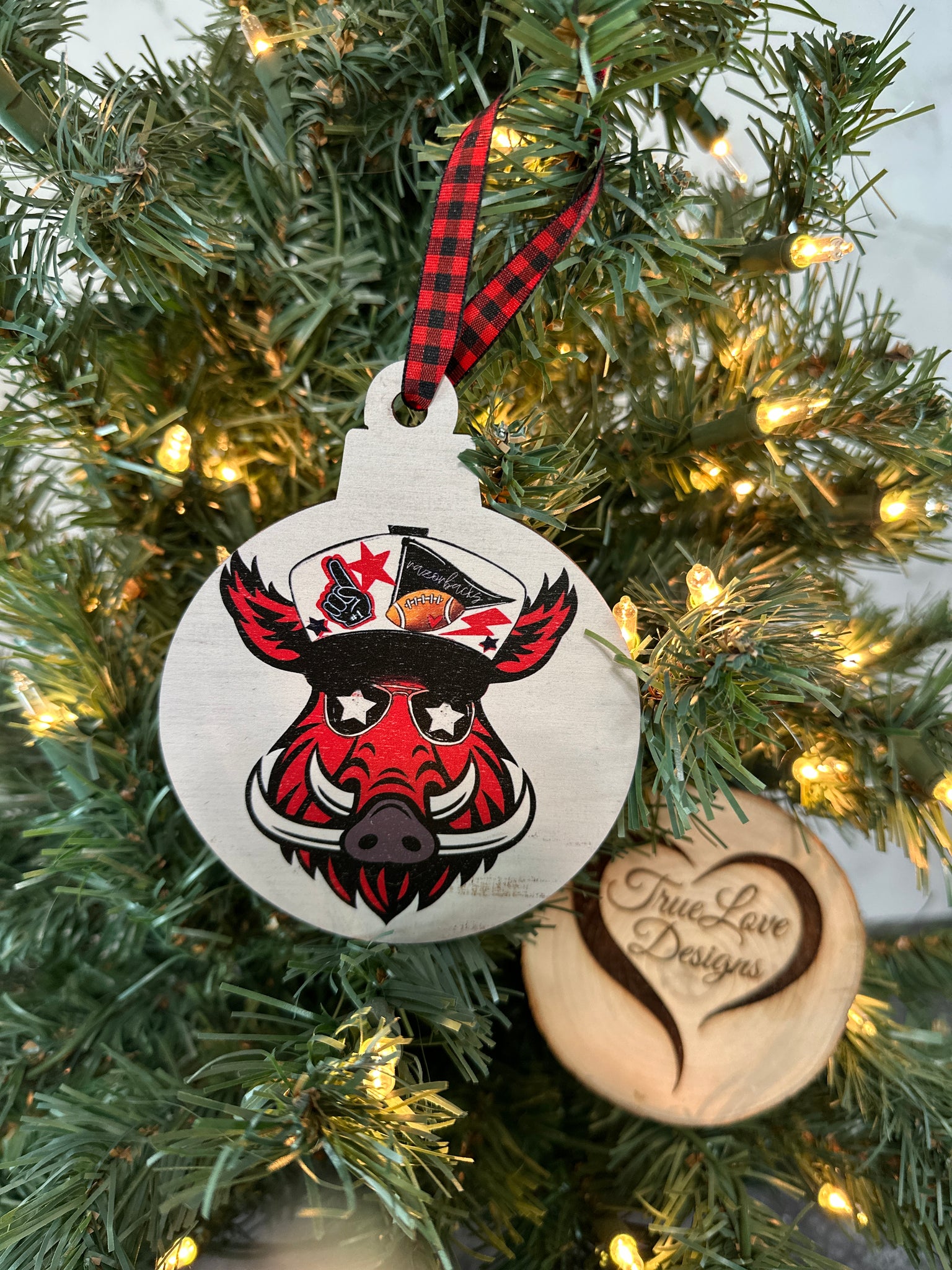 Made with durable, lightweight materials, this ornament is easy to hang and built to last through many seasons of festive decorating. Whether you're a lifelong fan or looking for the ideal gift for an Arkansas enthusiast, this ornament is a must-have for your holiday collection.
